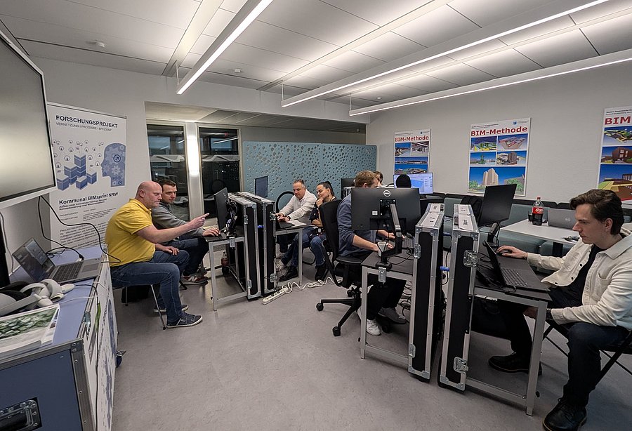 Aufbauend auf den Ergebnissen des Forschungsprojektes „Kommunal BIMsprint NRW“ bieten wir neben der bereits bestehenden Weiterbildung "BIMKommunal – Strategie" nun auch die Weiterbildung "BIMKommunal - Vertiefung " an. Durch den spielerischen innovativen Ansatz der neuen Weiterbildung in Form eines Planspiels erleben die Teilnehmenden die BIM-Methode im Sprint und wenden sie in verschiedenen Stationen an, die den gesamten Bauwerkslebenszyklus abdecken – von der Planung über den Bau bis zum Betrieb. Alle notwendigen Werkzeuge – von Software über VR-Brillen und Tablets bis hin zu 360° Kameras - sowie Klick- und Videoanleitungen stehen für eine eigenständige Durchführung der BIM-Anwendungsfälle bereit.
