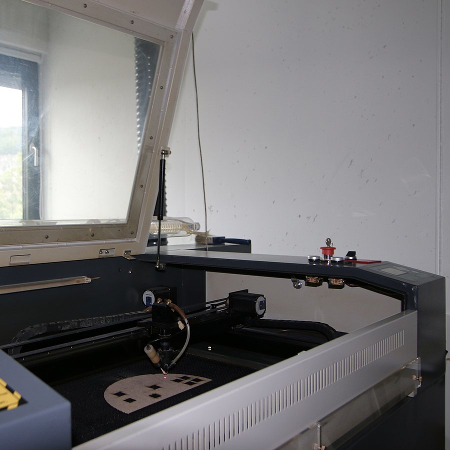 The CNC laser machine can trace lines and arcs on a planar plane thanks to the two directional axes. Materials such as Plexiglas, wood and cardboard can be cut and engraved precisely, simplifying and speeding up model making.