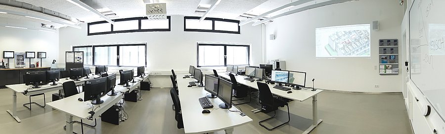 The TECH-Lab / BIM-Lab is available to students and offers a variety of software and hardware resources to develop and enhance their Building Information Modeling (BIM) skills. Students have access to leading BIM software packages in as-built capture, modelling, model checking, project platforms (CDE), construction process simulation, cost management, building documentation, etc., enabling them to create, analyze and optimize complex building models.